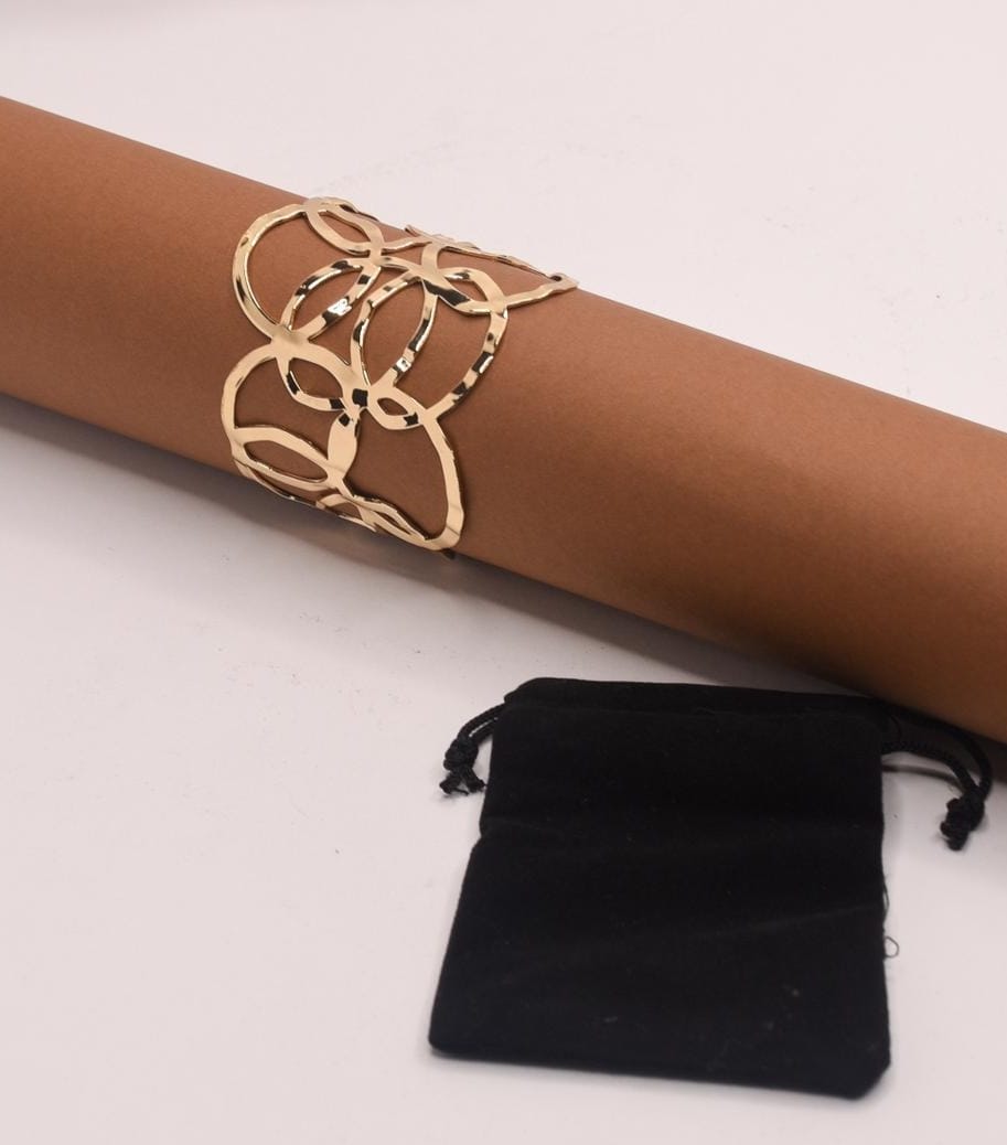 Brazalete color oro, versátil y sofisticado, que añade un toque divertido a cualquier outfit y estación. Un regalo perfecto para quienes buscan elegancia y estilo único.