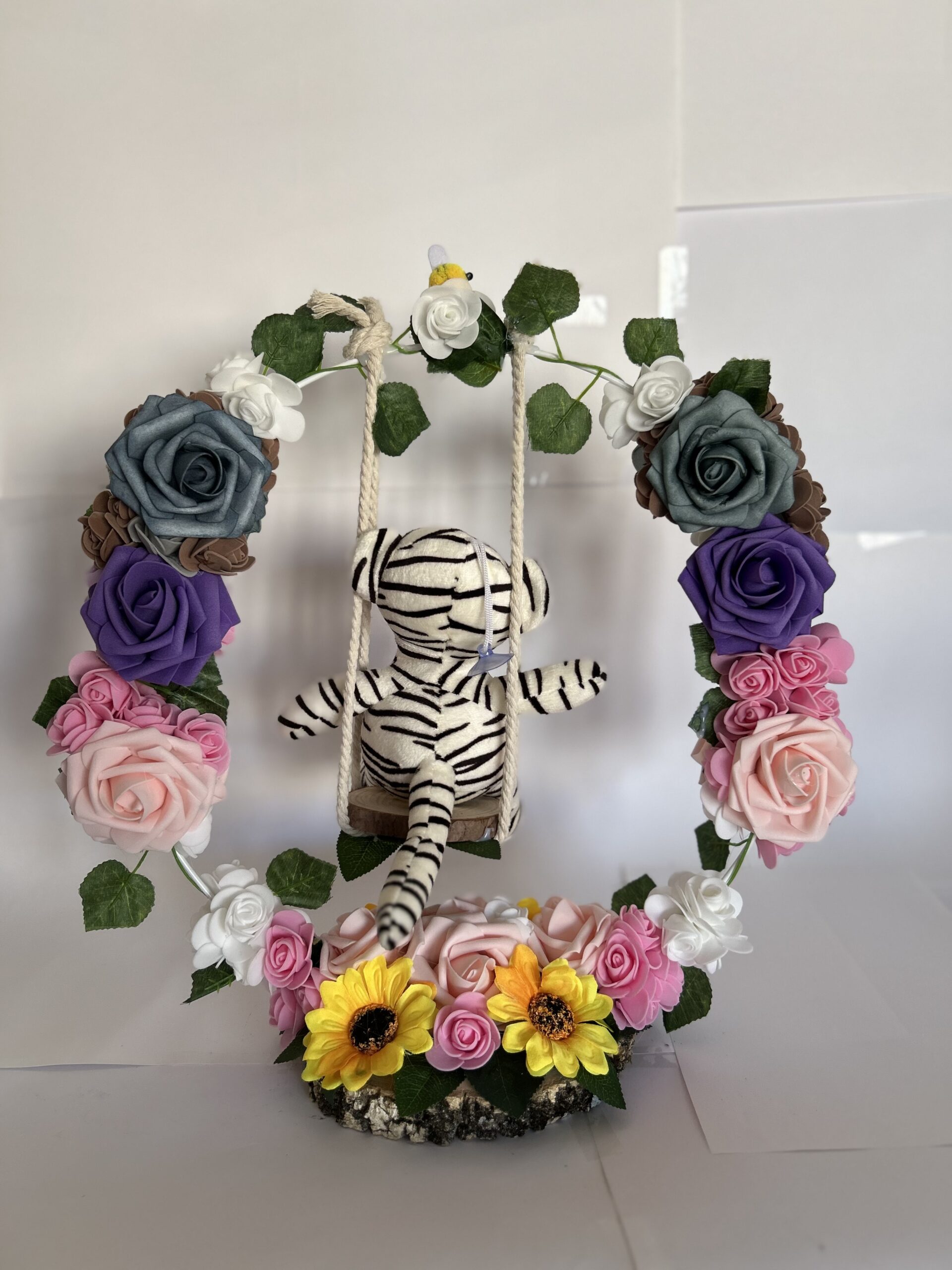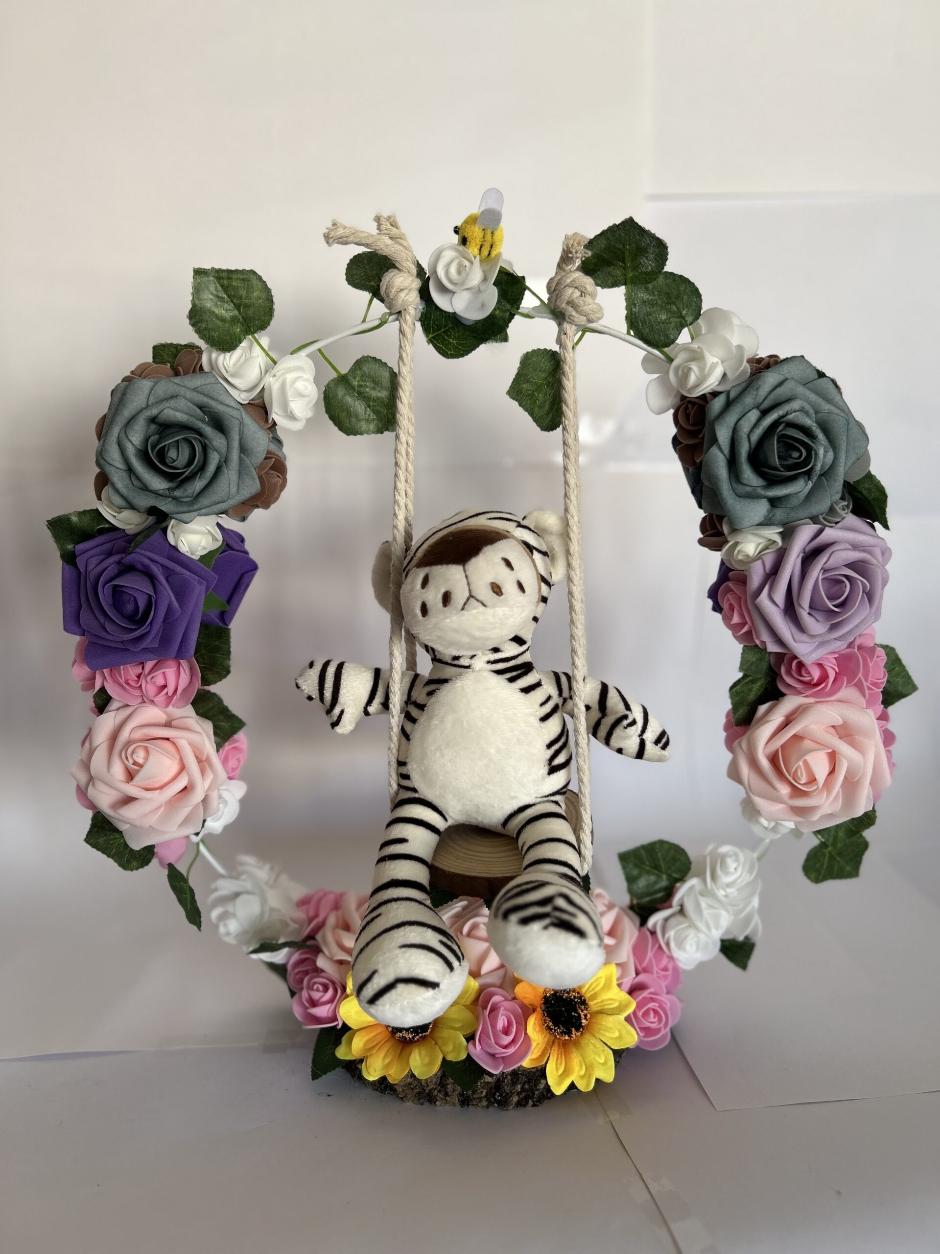 Si buscas un regalo original para recién nacidos, este aro con peluche en un columpio es una elección perfecta: combina estética, artesanía y emoción en un detalle que quedará para siempre.