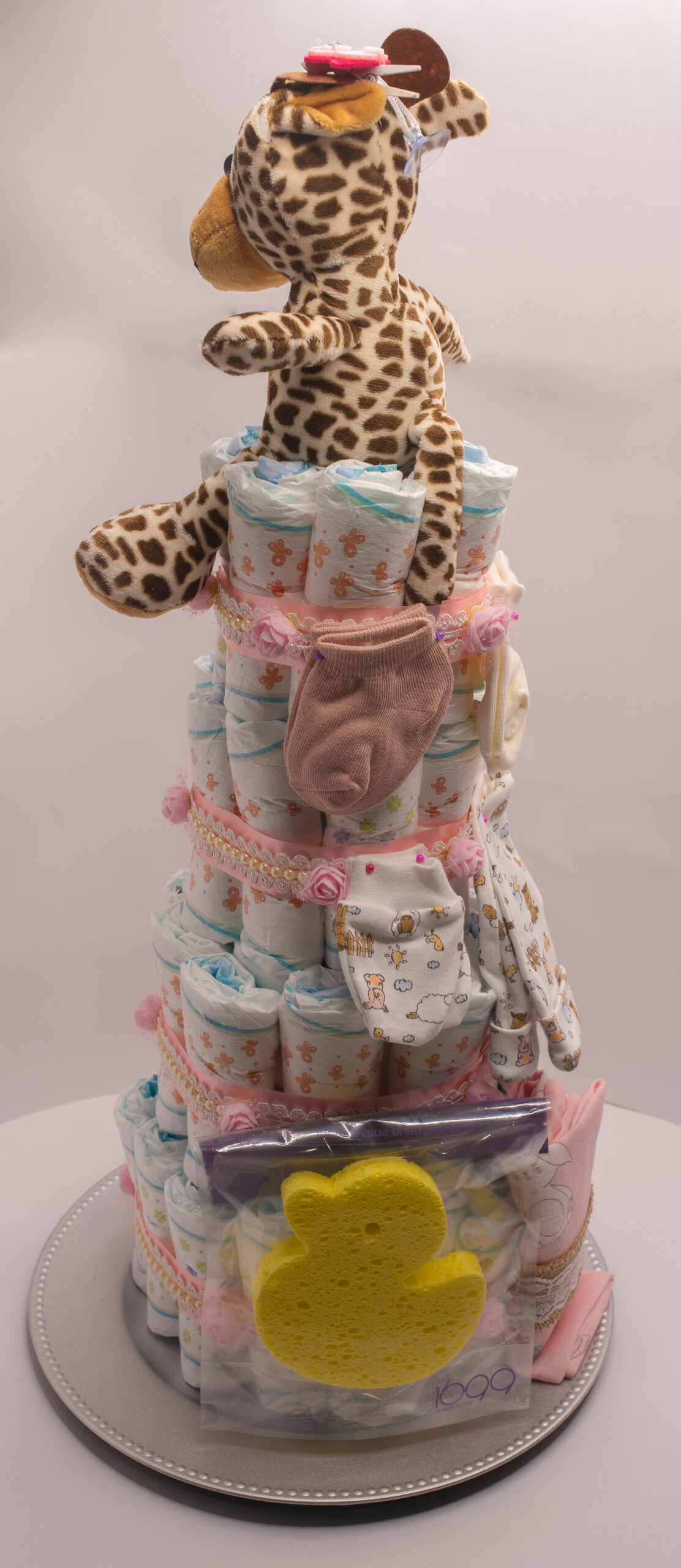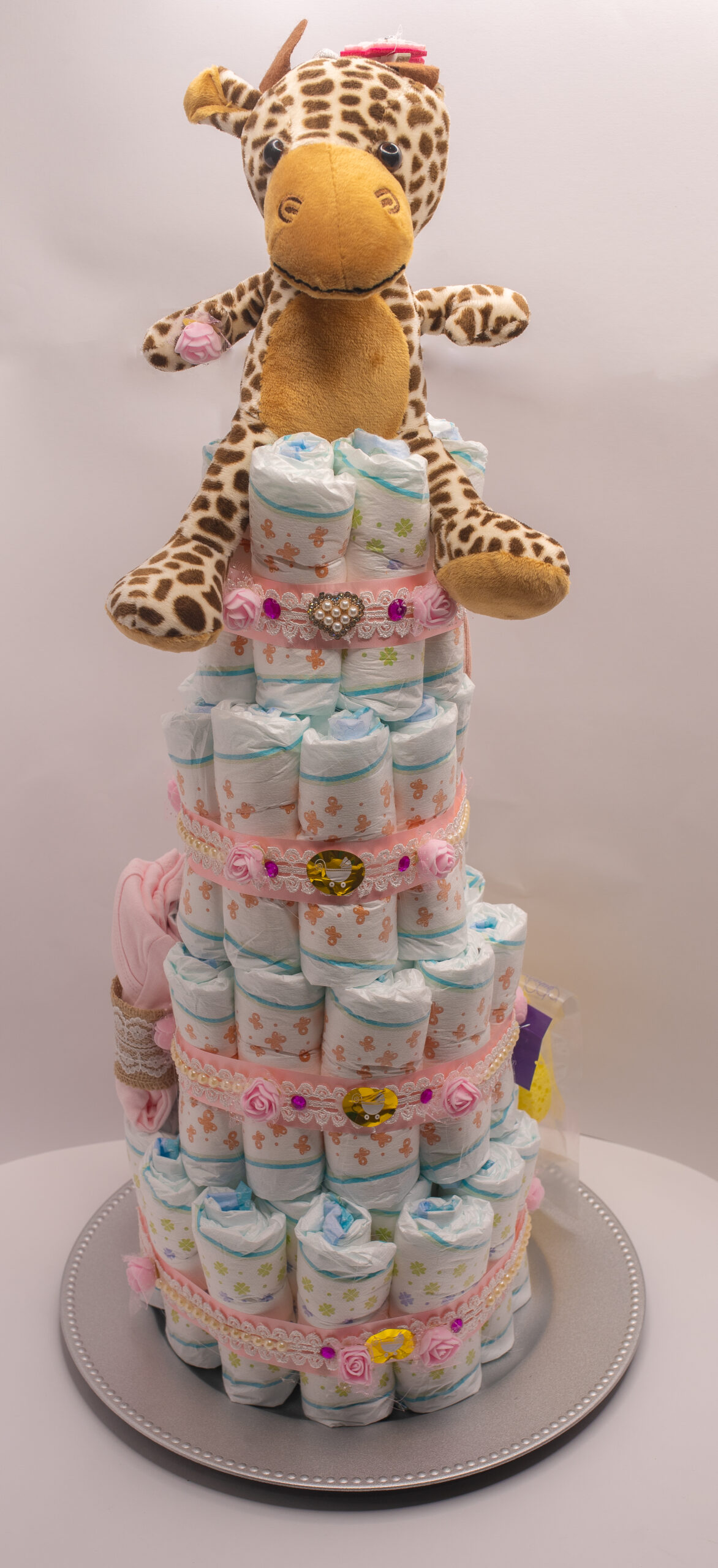 Haz especial la llegada de la pequeña con una tarta de pañales para niña, un regalo artesanal, útil y lleno de ternura que combina la practicidad de los pañales con un diseño decorativo encantador en tonos rosas, blancos y pastel.